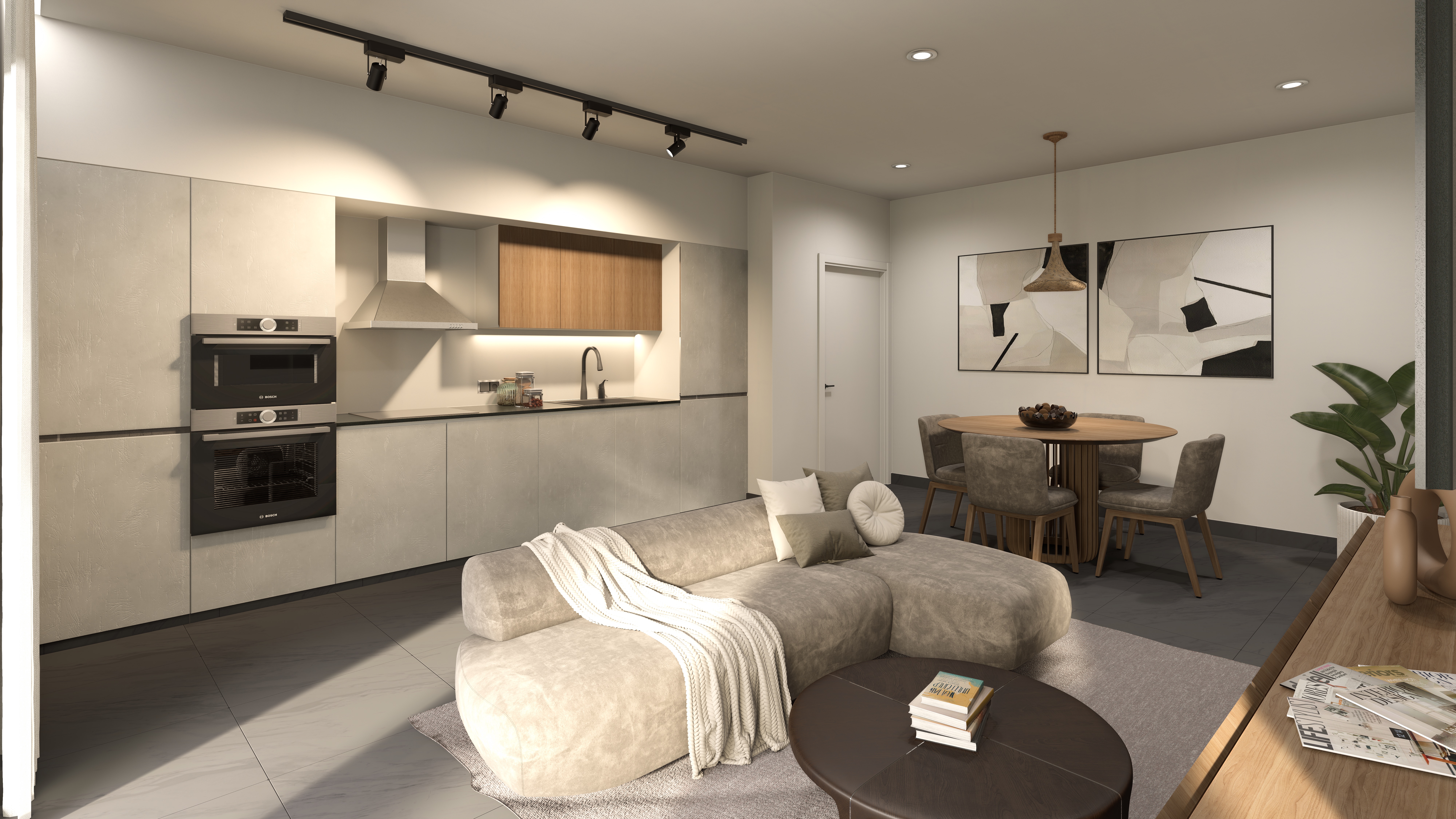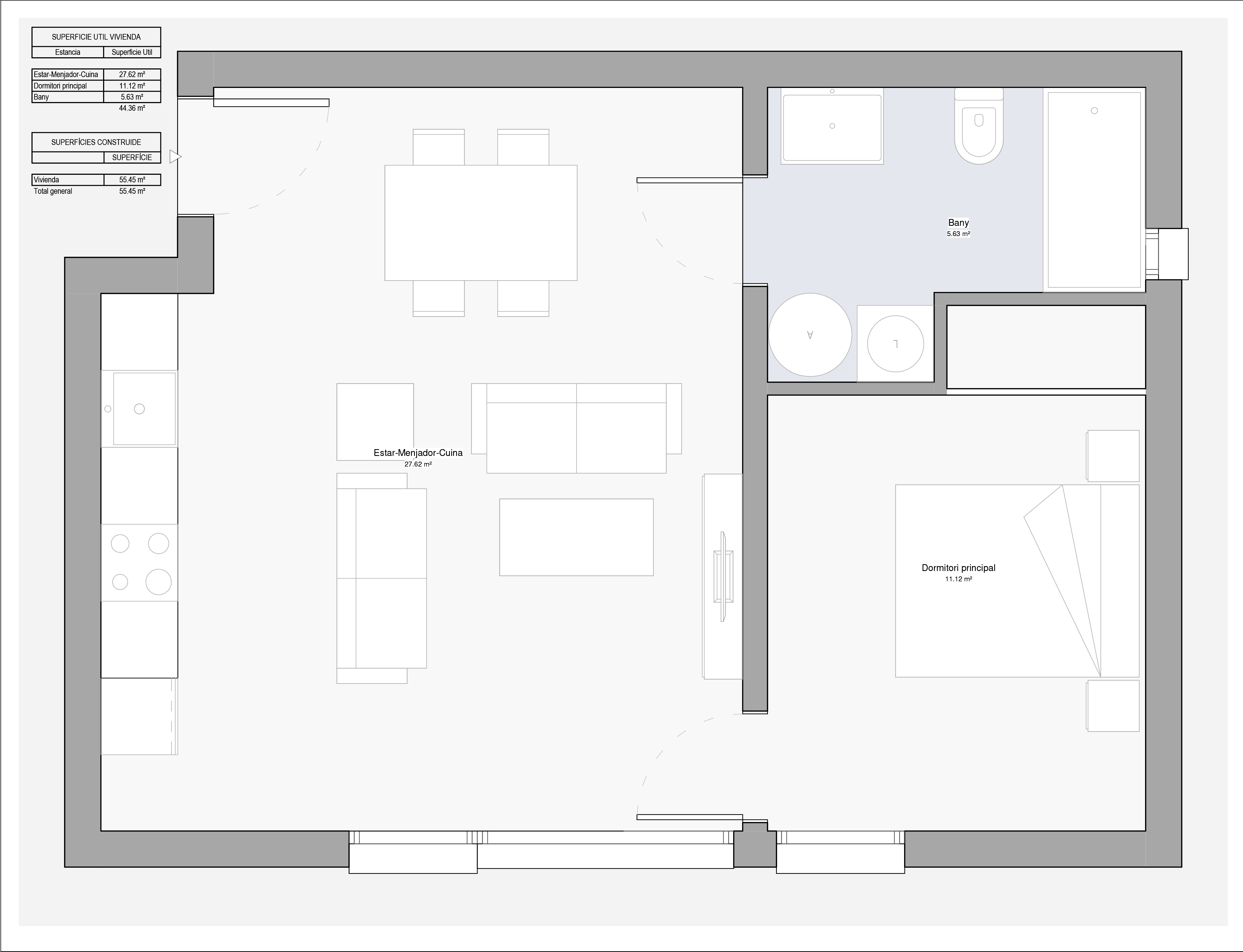 - Materiales seleccionados: Utilizamos una memoria de calidades optimizada que garantiza el mejor rendimiento térmico y acústico. No es posible modificar los materiales de construcción, pero sí puedes elegir entre diferentes opciones de acabados en mobiliario de cocina y lavabos.