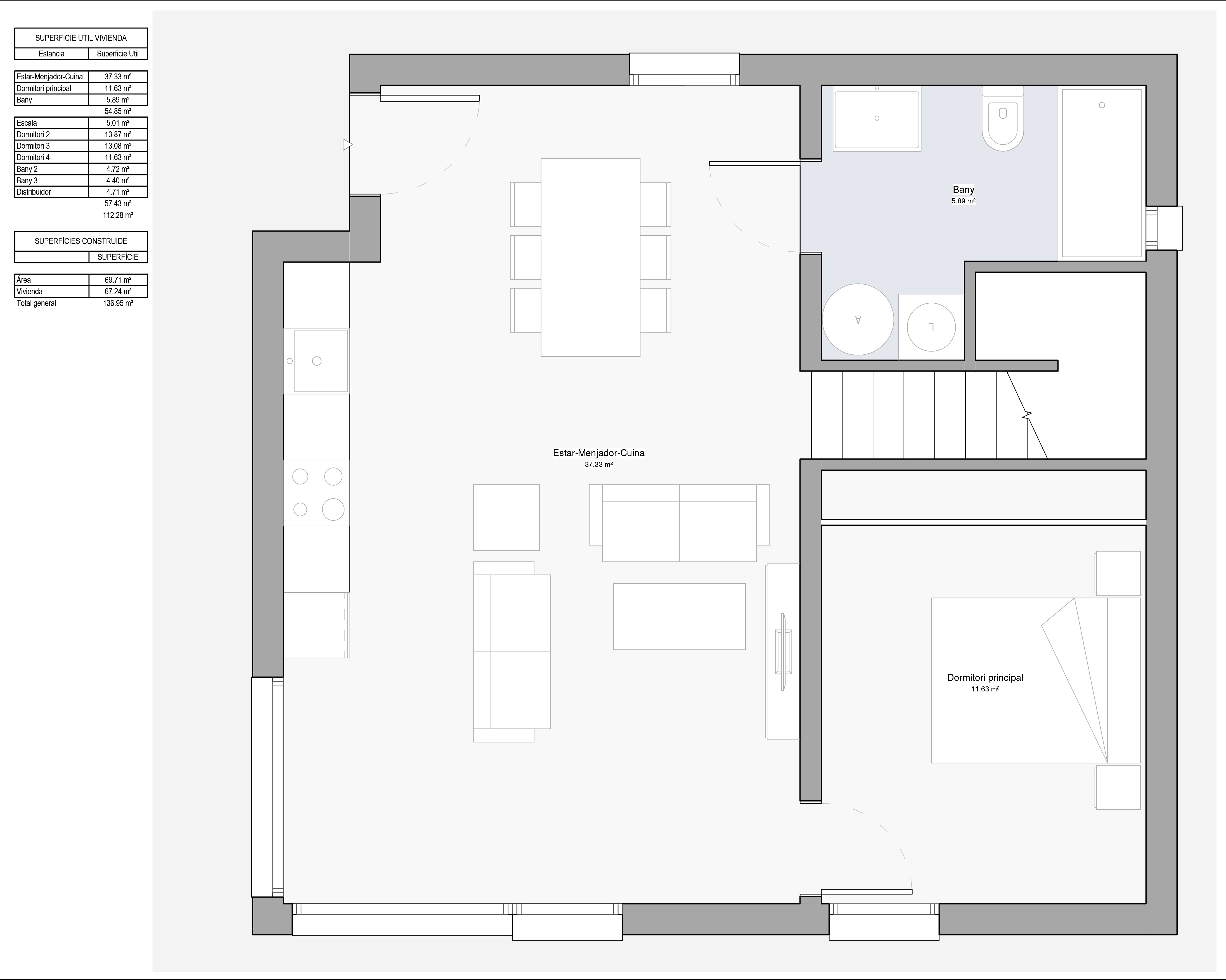 - Materiales seleccionados: Utilizamos una memoria de calidades optimizada que garantiza el mejor rendimiento térmico y acústico. No es posible modificar los materiales de construcción, pero sí puedes elegir entre diferentes opciones de acabados en mobiliario de cocina y lavabos.