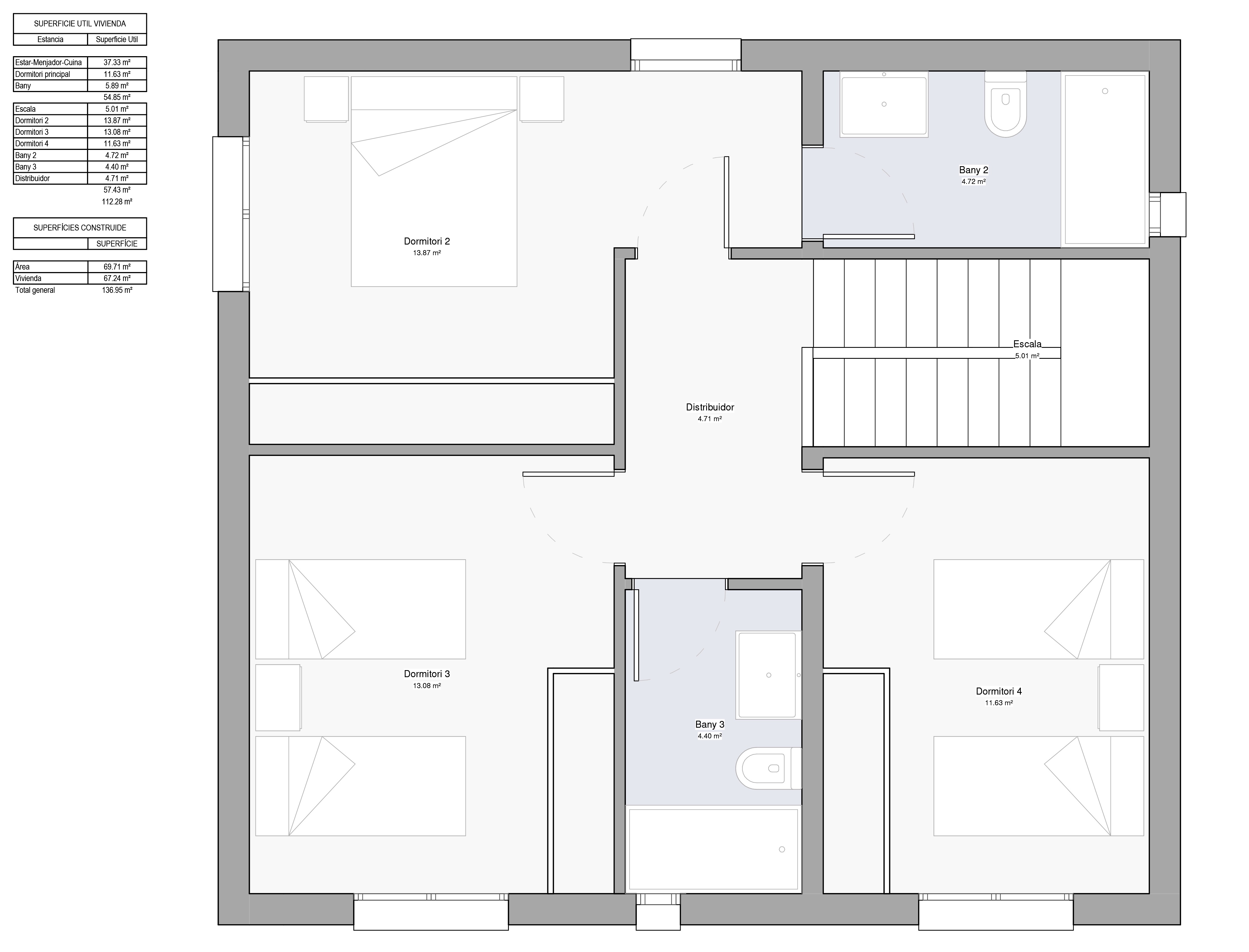 La planta superior dispone de tres habitaciones diseñadas para el confort y la privacidad, junto con dos baños completos, facilitando la rutina diaria y evitando esperas.
