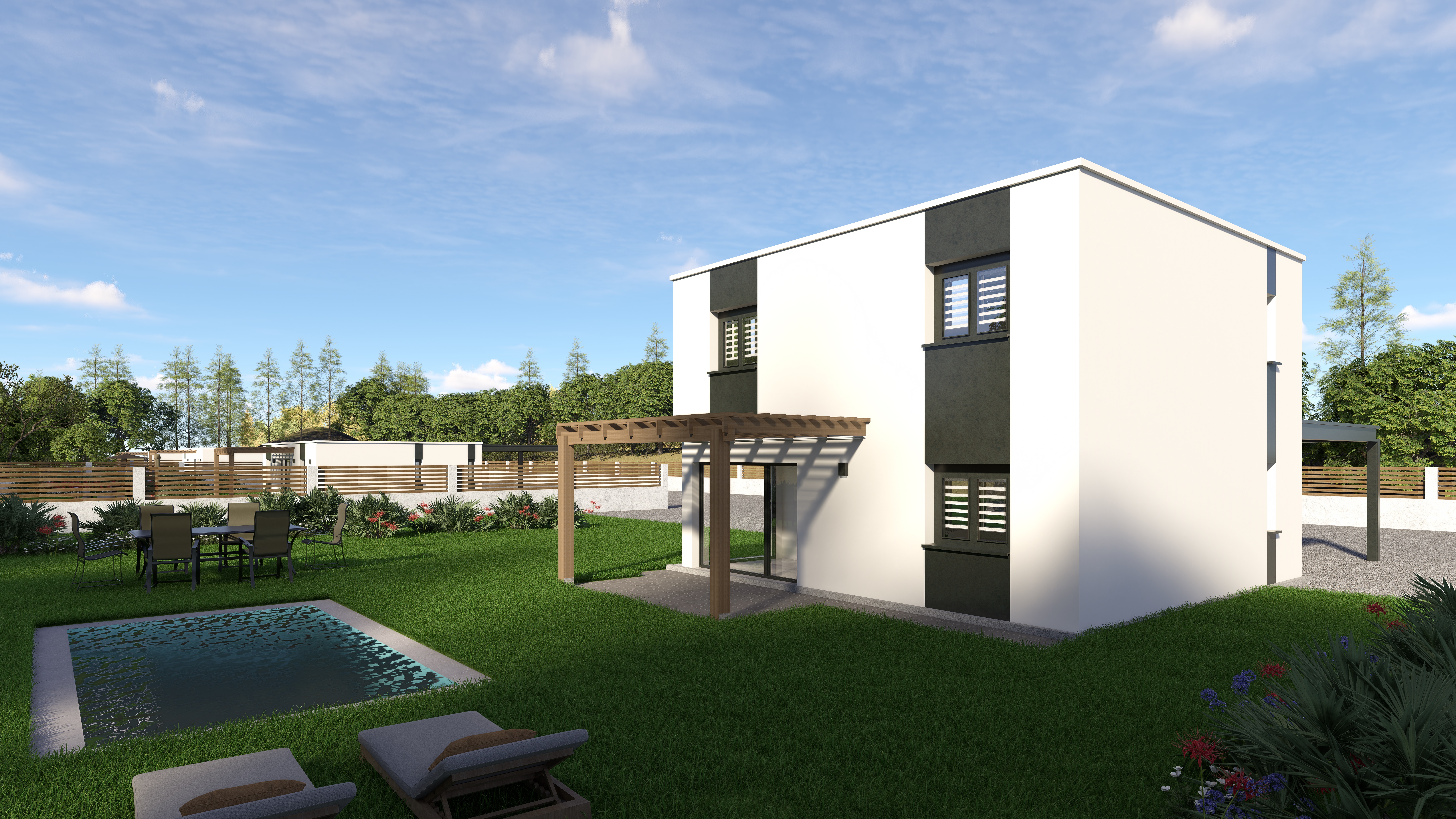 Los precios incluyen: Estructura y cubierta descritas, losa de compresión aislada, acabados de fachada, puertas y ventanas (persianas manuales en dormitorios), instalaciones, sistema aerotérmico para ACS, climatización, pintura interior y alicatados, baños y cocina.